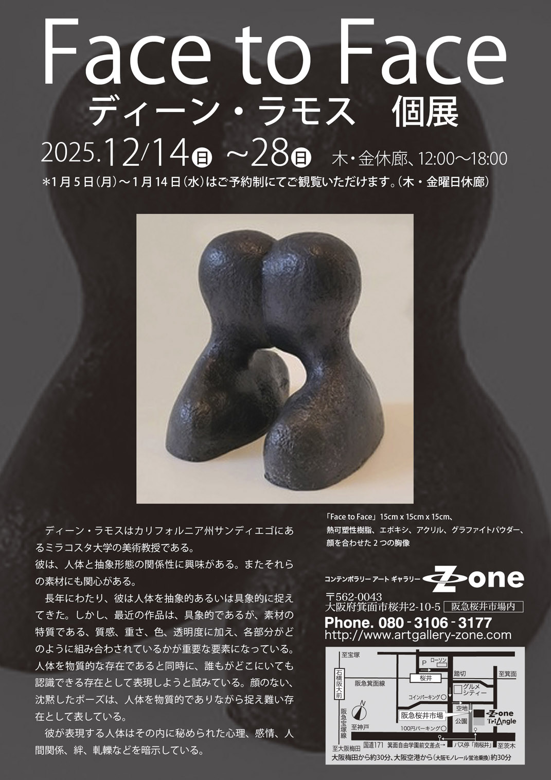 コンテンポラリーアートギャラリーZone では、12月14日より、ディーン・ラモス個展「Face to Face」を開催いたします。